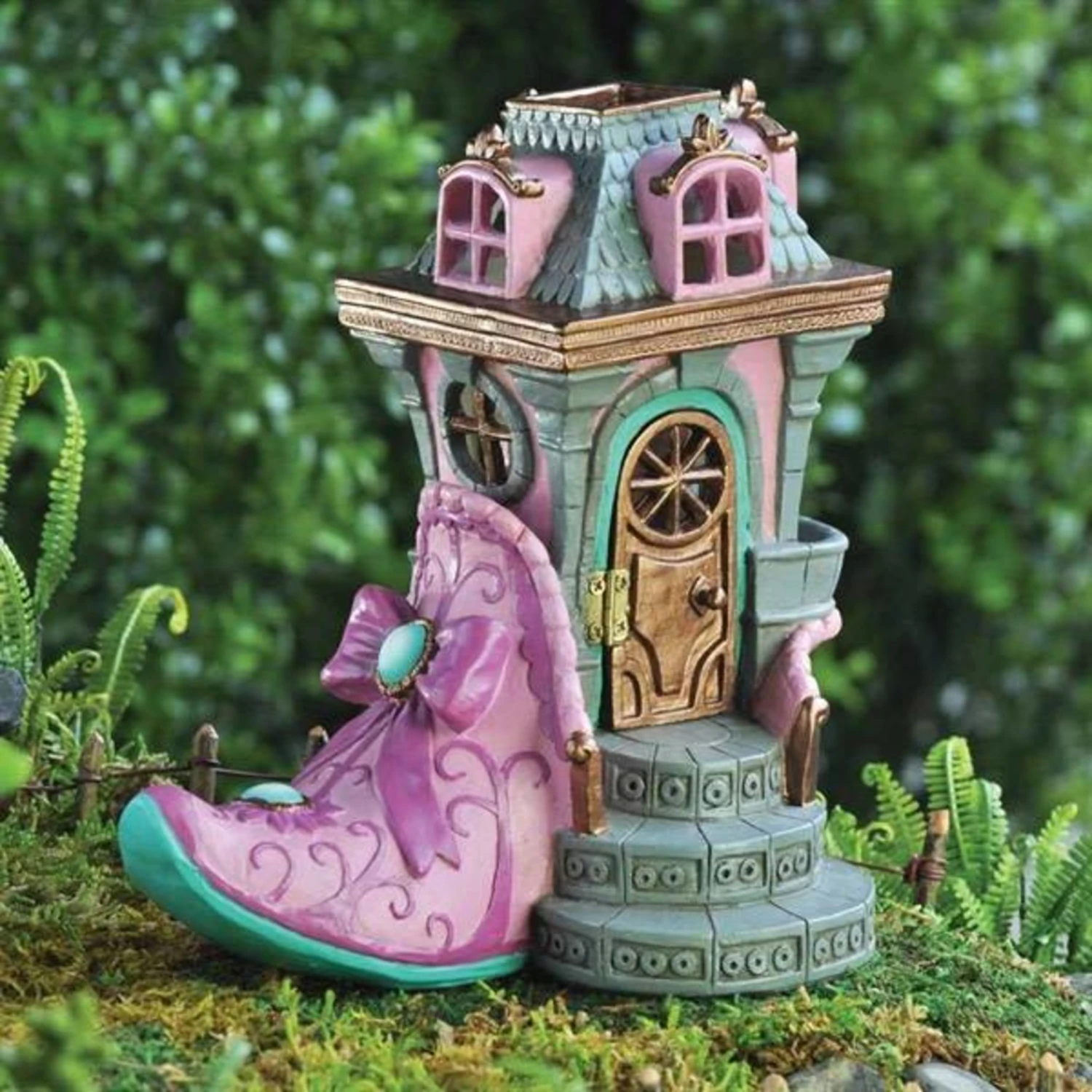 Fairies will make use of anything they find including this lost slipper…. which makes a lovely stylish fairy home. This home has three levels, allowing lots of natural light to spill in through the large windows on each side.Â