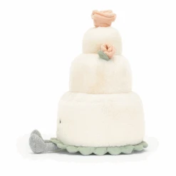 Amuseable Wedding Cake is the perfect gift for any Jellycat Fan for their wedding, this cake has the softest creamy coloured fur, cute peachy coloured flowers, soft green leaves and base and the cutest little sparkly silver legs.
